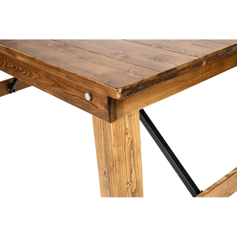 De Country-tafel is ontworpen met het oog op functionaliteit – het opklapbare onderstel maakt eenvoudig opbergen en transport mogelijk. Daardoor is hij uitstekend geschikt voor restaurants en trouwlocaties.
