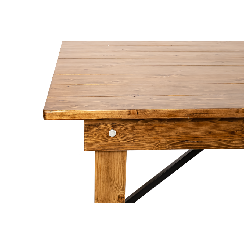De houten Country-tafel is een uniek meubelstuk in rustieke stijl, volledig vervaardigd uit natuurlijk grenenhout. De solide constructie en het eenvoudige maar opvallende design maken dat hij perfect past in de sfeer van landelijke trouwzalen, herbergen en restaurants. Het is de ideale keuze voor locaties waar duurzaamheid, natuurlijke materialen en het tijdloze karakter van hout tellen.