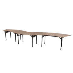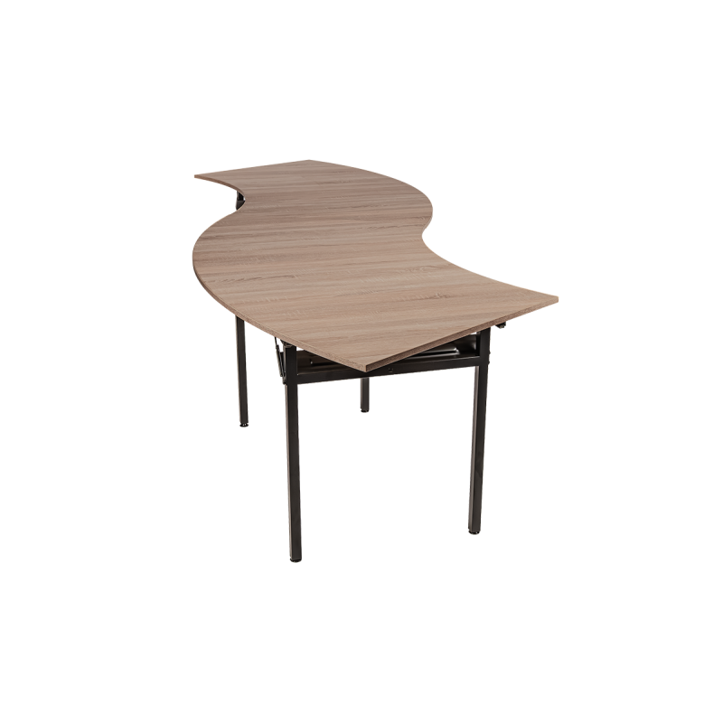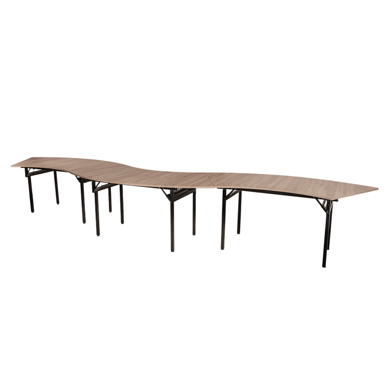 De opklapbare bankettafel Fala is ontworpen voor locaties waar niet alleen functionaliteit maar ook visueel effect telt. De unieke, golvende lijn maakt het mogelijk meerdere tafels te combineren tot een samenhangende, decoratieve compositie die doet denken aan de beweging van golven, waardoor elk interieur een modern en dynamisch karakter krijgt. Perfect voor banketten, conferenties, bedrijfsrecepties en elegante evenementen.