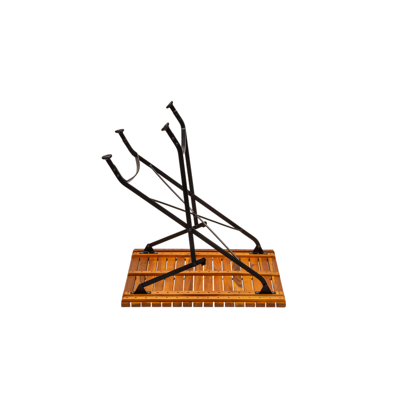 Dankzij de compacte afmetingen van 70x70 cm is de tafel ideaal voor kleinere ruimtes en biedt ze plaats aan 2–4 personen. De inklapbare constructie maakt opslag en het snel klaarmaken van de ruimte eenvoudig – ideaal voor seizoensgebonden horecazaken of locaties waar flexibiliteit belangrijk is.