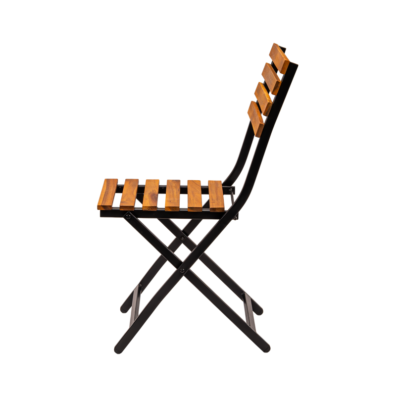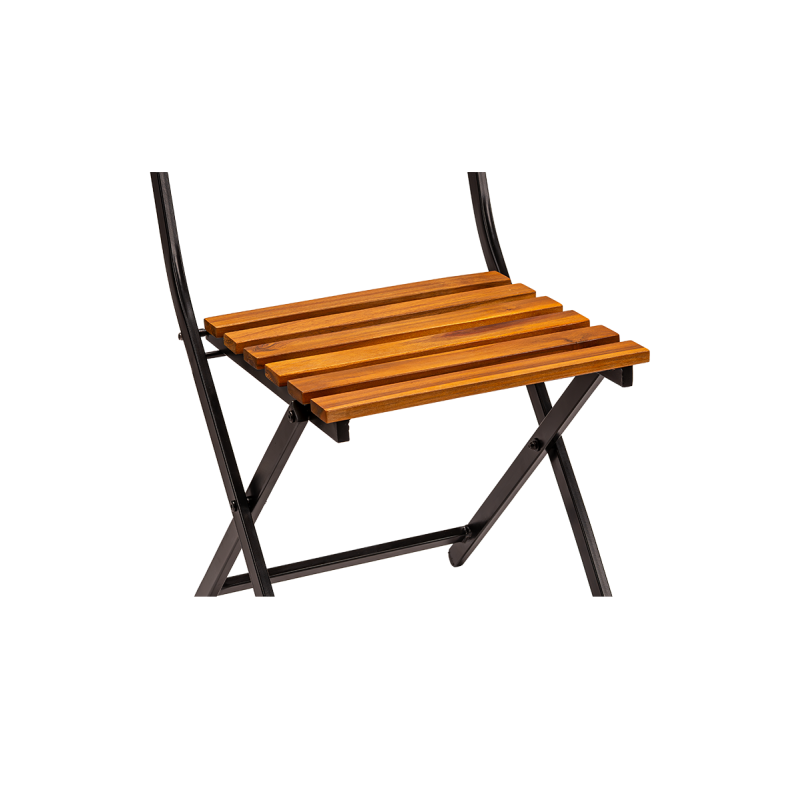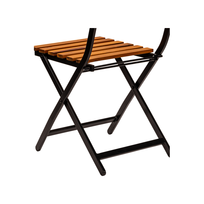Het gepoedercoat stalen frame garandeert stabiliteit en weerstand tegen intensief gebruik en weersinvloeden. De zitting en rugleuning van houten latten geven de stoel een natuurlijke uitstraling en bieden comfortabel zitgemak. De stoel is opvouwbaar, wat het opbergen, transporteren en snel klaarmaken van de ruimte vergemakkelijkt.
