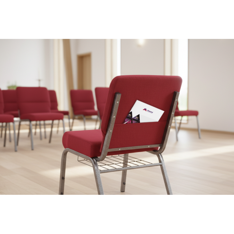 Op de illustratieve foto’s wordt de stoel AMBASSADOR getoond met een extra mandje (apart verkrijgbaar), dat kan worden gebruikt voor het opbergen van promotionele en religieuze materialen, kranten of brochures. Voor de montage zijn geen gereedschappen nodig.
