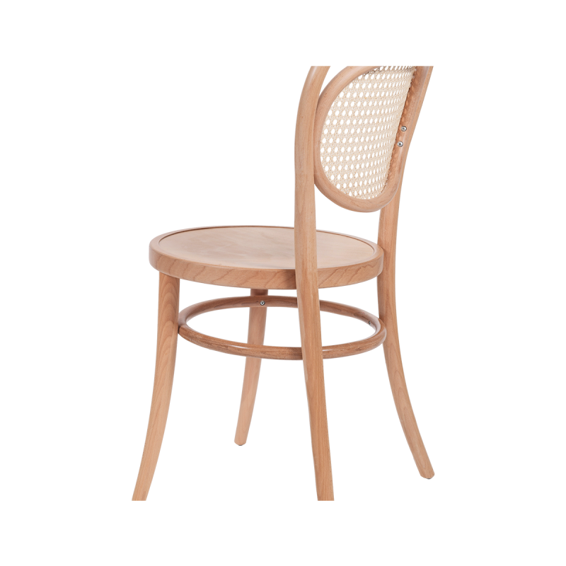 De houten stoel ELLIPSE onderscheidt zich door een subtiele, ovale lijn van de rugleuning en decoratief vlechtwerk dat het model een uitzonderlijke lichtheid geeft. Natuurlijk beukenhout in combinatie met de gebogen constructie vormt een harmonieus geheel, geïnspireerd op klassiek design. Deze stoel komt perfect tot zijn recht in sfeervolle cafés, elegante restaurants en boetiekhotels, waar hij de ambiance versterkt en verfijnde interieurs aanvult.