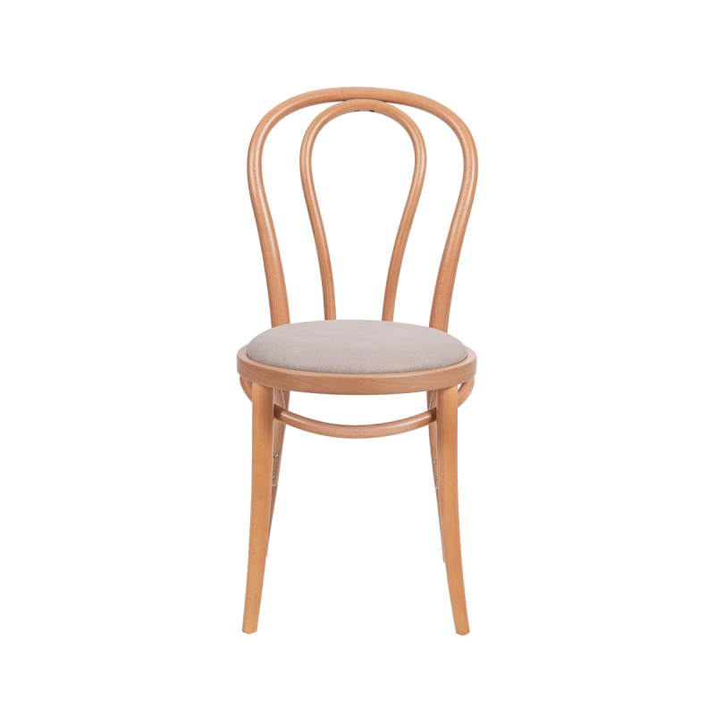 De gebogen stoel MONET 18 in gestoffeerde uitvoering is ideaal voor restaurants, cafés en hotels waar sfeer en comfort centraal staan . De natuurlijke houtkleur verwarmt het interieur en combineert moeiteloos met zowel klassieke als moderne concepten. Dankzij de zachte zitting verhoogt dit model het comfort tijdens langere ontmoetingen aan tafel. De lichte vorm overheerst het interieur niet en geeft het tegelijkertijd een tijdloos, luxueus karakter.