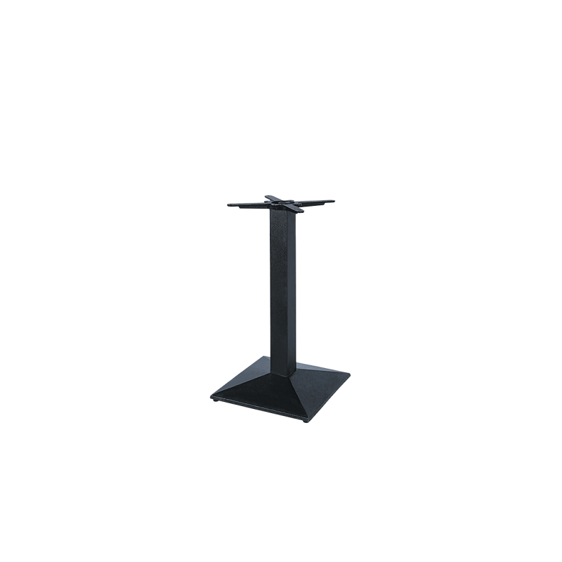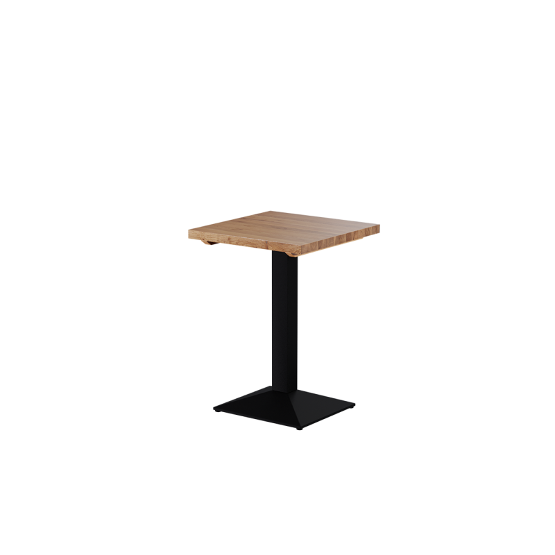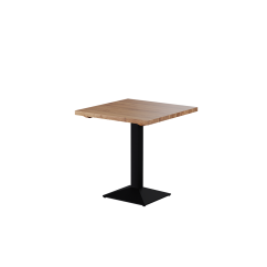 Een belangrijk voordeel van model GIZA is de stabiele stalen basis. De vierkante vorm brengt het gewicht van het massieve blad perfect in balans en garandeert veilig en comfortabel gebruik, zelfs bij hoge bezettingsgraad. De constructie is vervaardigd uit staal met een poedercoating, wat zorgt voor verhoogde weerstand tegen krassen en externe invloeden. De slanke kolom geeft de tafel een visuele lichtheid, terwijl de structurele sterkte behouden blijft.