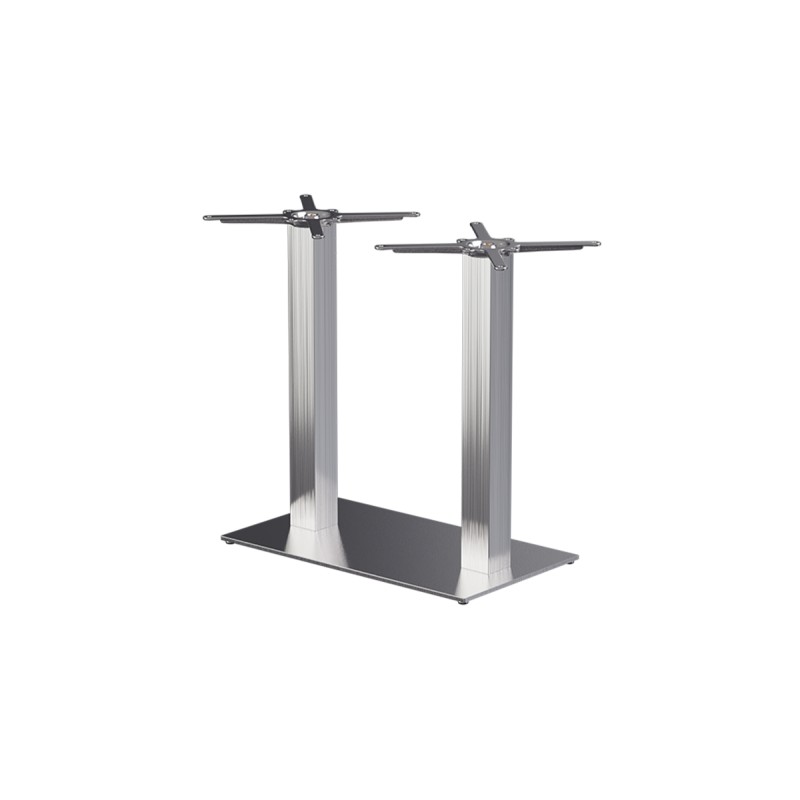 De constructie van de tafel is gebaseerd op twee stalen kolommen van 8x8 cm, die zorgen voor een gelijkmatige ondersteuning en hoge belastbaarheid. De langwerpige basis met een gietijzeren kern garandeert stabiliteit, zelfs in dynamische cafét omgevingen. Het gewicht wordt gelijkmatig verdeeld, waardoor wiebelen of verschuiven van de tafel wordt voorkomen. Het geheel oogt elegant en professioneel en sluit perfect aan bij een modern, minimalistisch interieur.