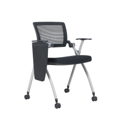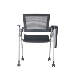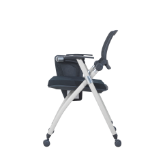Dankzij de inklapbare constructie en de mogelijkheid om een schrijftablet toe te voegen (apart verkrijgbaar), ondersteunt FLOW actief werken en maakt het gemakkelijk om aantekeningen te maken of een laptop te gebruiken zonder extra tafels. Na afloop van het evenement kunnen de stoelen plat worden ingeklapt en opgeborgen, waardoor waardevolle ruimte wordt bespaard. Bovendien maakt de opklapfunctie het mogelijk meerdere stoelen tegelijk op te bergen, wat zorgt voor orde en optimaal gebruik van de beschikbare ruimte.