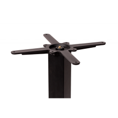 De basis van het cafétafeltje Alfa XL is de grotere versie van de Alfa S-basis. Het frame op één centrale poot zorgt voor stabiliteit. De basis is voorzien van verstelbare kunststof voetjes, zodat de basis niet beschadigt bij het verschuiven van de tafel. Voor deze basis raden wij gelamineerde, gefineerde en HPL-bladen aan.