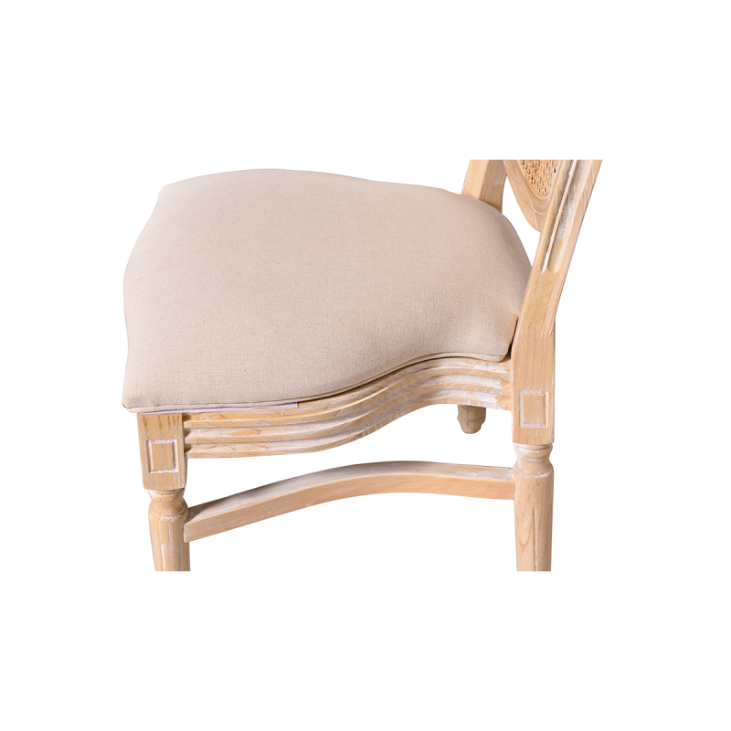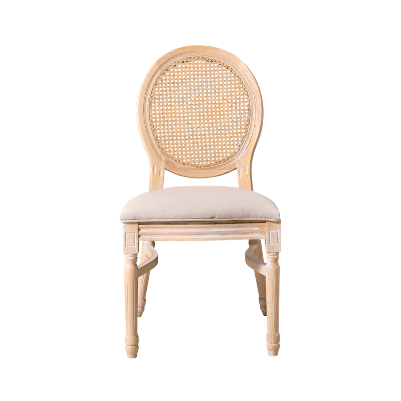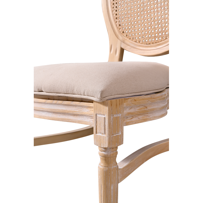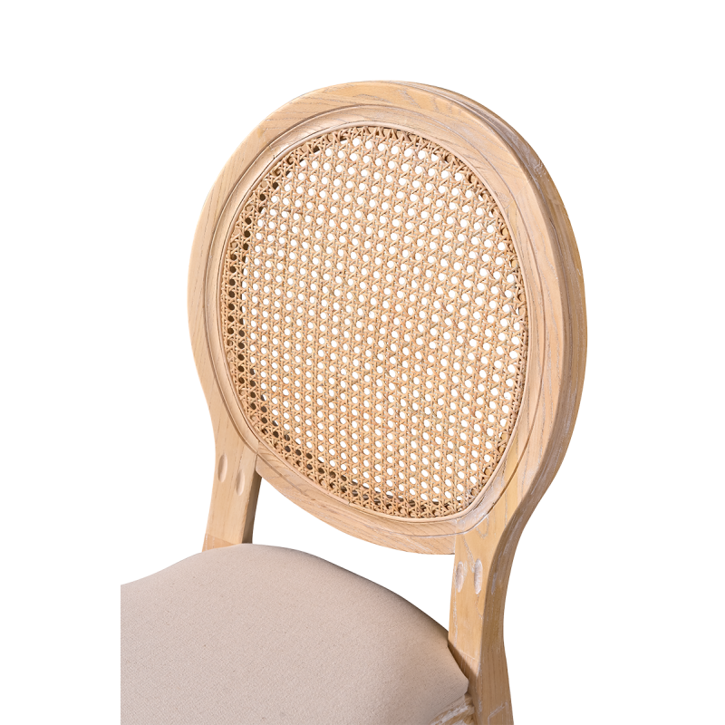 De stoel Medalion is de kwintessens van stijl en klasse – de ideale keuze voor restaurants, banket- en trouwzalen waar elk detail telt. Het tijdloze design en de natuurlijke materialen vormen een harmonisch geheel en geven interieurs een uniek karakter. Gemaakt van massief hout biedt de stoel de stabiliteit en duurzaamheid die nodig zijn voor intensief gebruik in commerciële ruimtes. De rotan rugleuning doorbreekt subtiel de klassieke vorm en voegt lichtheid en verfijning toe. De gestoffeerde zitting garandeert comfort, zelfs tijdens lange ceremonies en ontvangsten. De zacht afgeronde rugleuning in de karakteristieke medaillonvorm, de fijn bewerkte poten en de subtiele versieringen van het frame benadrukken het elegante karakter. Elk detail is met zorg voor esthetiek uitgewerkt, waardoor de stoel niet alleen visueel indruk maakt, maar ook op zichzelf een sieraad is – een ideaal decor voor bruidsreportages en bijzondere zaalopstellingen.