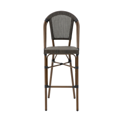 De zitting en rugleuning van de MATTEO BAR zijn gemaakt van technorattan gaas dat strak over de constructie is gespannen, waardoor een gelijkmatig en stabiel oppervlak ontstaat. Deze oplossing biedt comfort en de juiste flexibiliteit , vooral bij intensief gebruik en een hoge gastenrotatie. De materiaalstructuur is homogeen en bestand tegen vervorming, waardoor het langdurig zijn vorm behoudt.