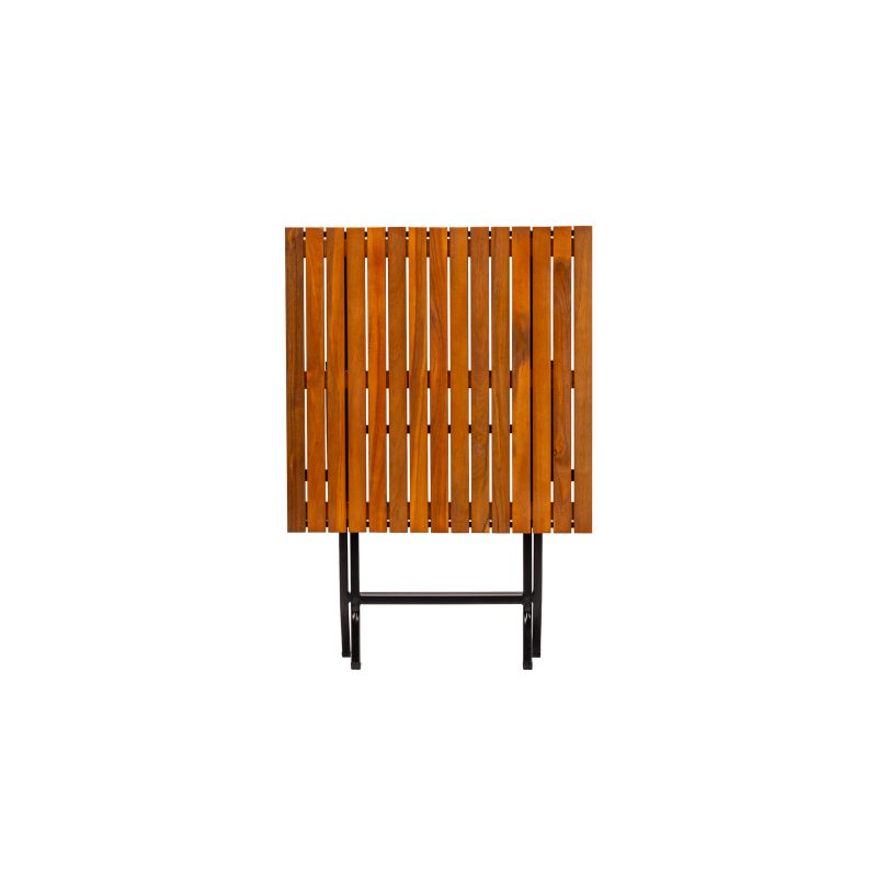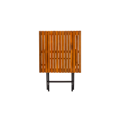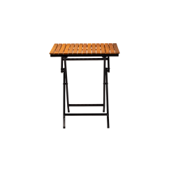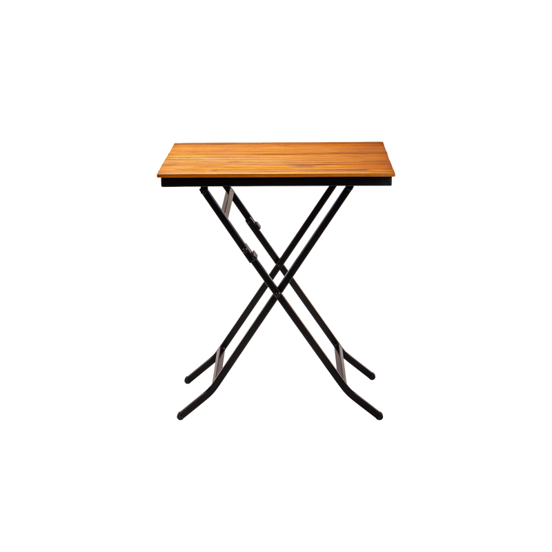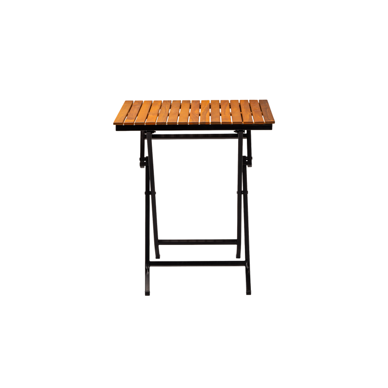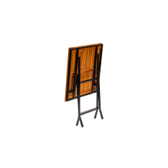 Het gepoedercoat stalen frame zorgt voor stabiliteit en weerstand tegen intensief gebruik, terwijl het houten tafelblad een natuurlijke en tijdloze uitstraling biedt. Dankzij de opvouwbare constructie is de tafel gemakkelijk op te bergen en snel klaar te zetten – ideaal voor seizoensgebonden horeca of flexibele ruimtes.