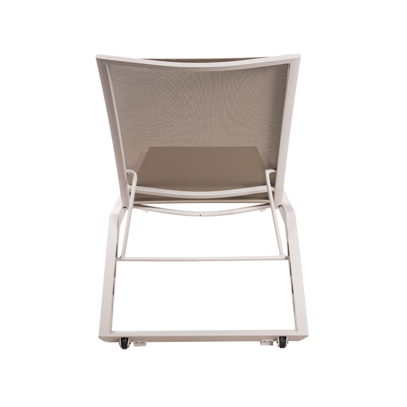 Het verstelbare outdoor ligbed RIVIERA onderscheidt zich door zijn strakke geometrie en verfijnde vormgeving, die perfect past in professionele ontspanningszones. Het slanke silhouet en de zorgvuldig ontworpen rugleuning geven het een moderne en georganiseerde uitstraling. Dit model maakt deel uit van onze Mextra Sun-lijn en komt uitstekend tot zijn recht bij hotelzwembaden, wellnessterrassen en in SPA-ruimtes , waar het voldoet aan de hoge eisen van de HoReCa-sector.