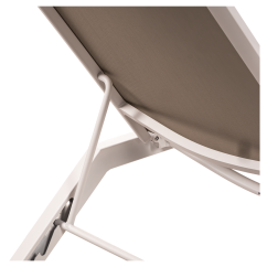 De aluminium 4-standen verstelbare rugleuning maakt het mogelijk de positie aan te passen aan de voorkeuren van gasten – van rechtop zitten tot volledige ontspanning. Een extra voordeel is de stapelbaarheid – het aluminium ligbed RIVIERA kan buiten het seizoen eenvoudig worden opgeslagen of snel worden verplaatst voor evenementen bij het zwembad.